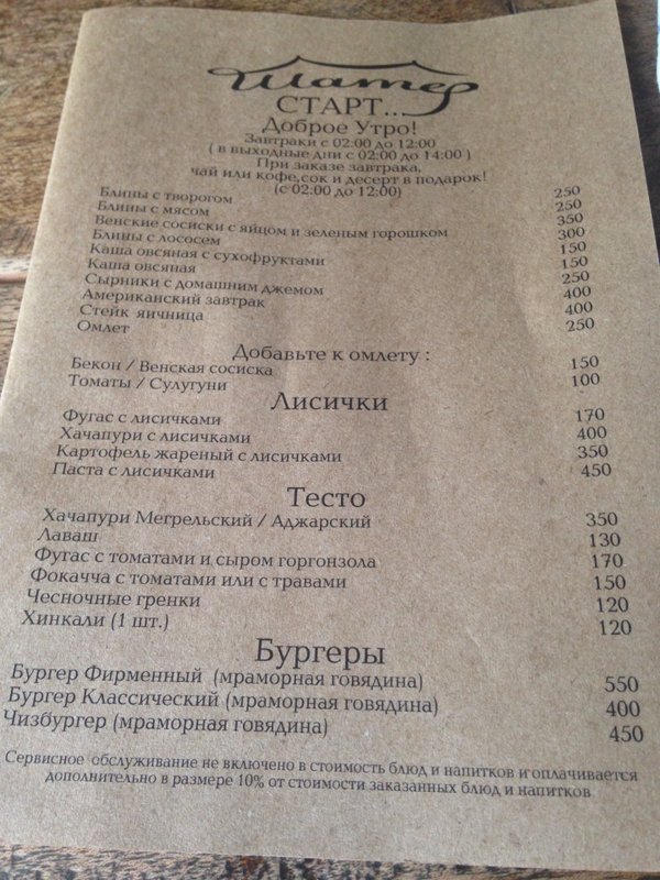 В этом заведении удачное только месторасположение. Еда ужасная - всё, что мы заказали, было невкусным (а было нас четверо и заказывали кучу всего). Меню на сайте не соответствует реальному. В общем не советуем посещать. Это уже не тот шатер, что был раньше..